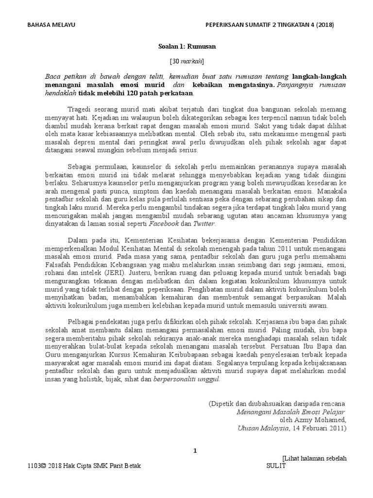 Soalan Bm Kertas 2 Peperiksaan Sumatif 2 Tingkatan 4 2018 Pdf